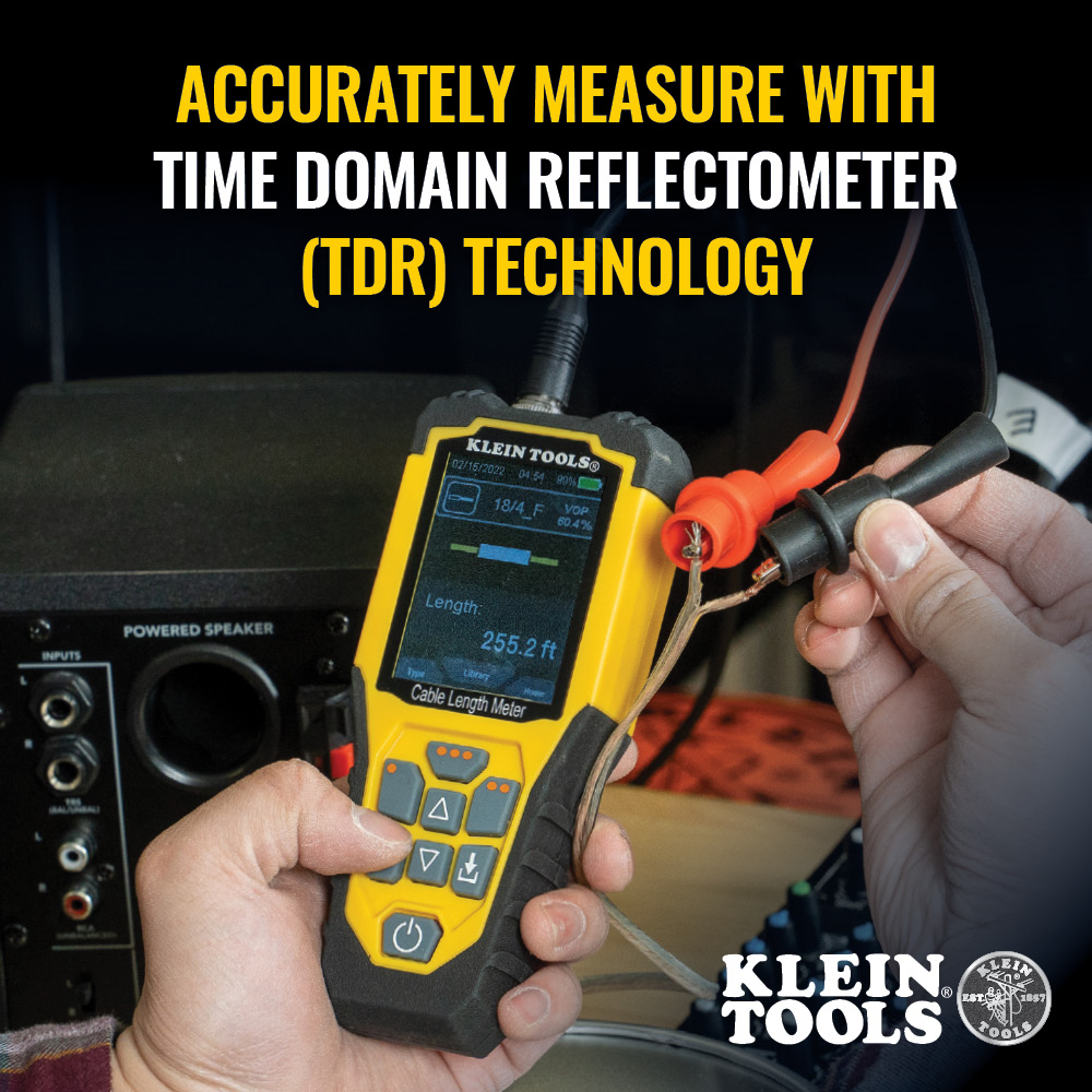Das Klein Tools Kabellängenmessgerät ist ein tragbares Zeitbereichsreflektometer (TDR) zur Kabellängenprüfung. Es misst Kabellängen, kalibriert die Ausbreitungsgeschwindigkeit (VOP), misst die Entfernung zu Kabelfehlern und verfügt über einen Tongenerator zur Kabelortung. Dieses kostengünstige Prüfgerät bietet eine genaue Kabellängenmessung für eine große Bandbreite verschiedener Kabeltypen. Inklusive Messleitungen und Tasche.