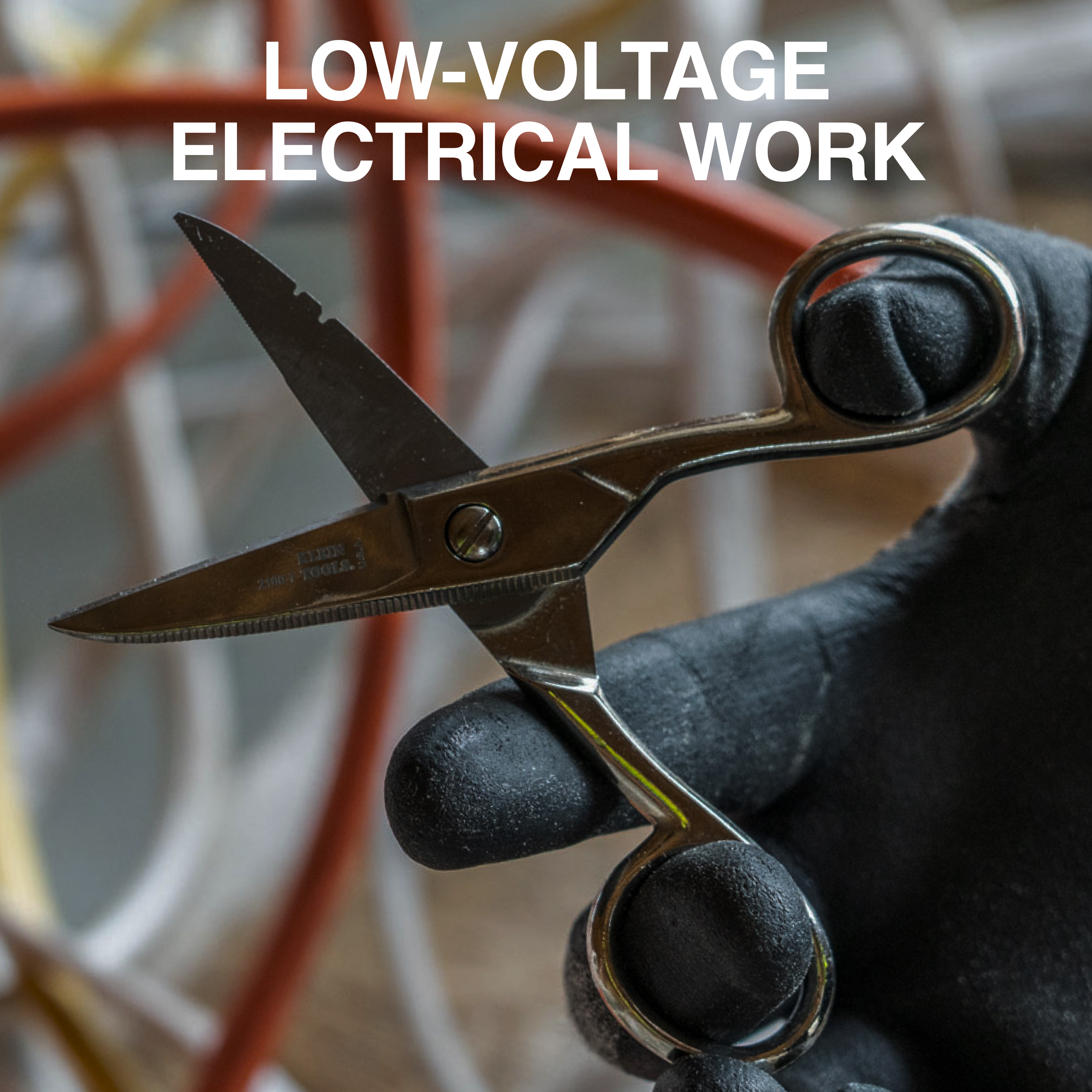 Die vernickelte Elektrikerschere 2100-7 von Klein Tools ist ideal für Arbeiten an Datenkommunikationskabeln und im Elektrobereich. Sie verfügt über Abisolierkerben für 19- und 23-Gauge-Leitungen und eine gezackte untere Klinge für präzises Schneiden. Hergestellt in den USA für unübertroffene Qualität und Langlebigkeit.
