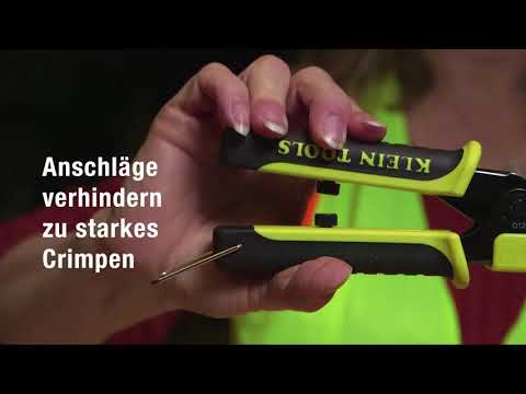 Das verlängerte Crimpwerkzeug für Koaxialkabel ist mit seinem verlängerten Design speziell auf Arbeiten in beengten Bereichen und kurze Leitungsverläufe ausgelegt. Dieses vielseitige Tool crimpt problemlos F-, BNC- und RCA-Kompressionssteckverbinder mit verstellbarem Universalkolben und Maßen auf dem Werkzeug. Das offene Design ermöglicht ein einfaches Einlegen aller Arten von Steckverbinderköpfen. Klein Tools bietet auch Universalhülsen-Steckverbinder, die sich 5-mal schneller montieren lassen. Sie passen auf alle Durchmesservarianten einer Kabelserie und auf schwer handhabbare mehrfach geschirmte Kabel und Plenum-Kabel.